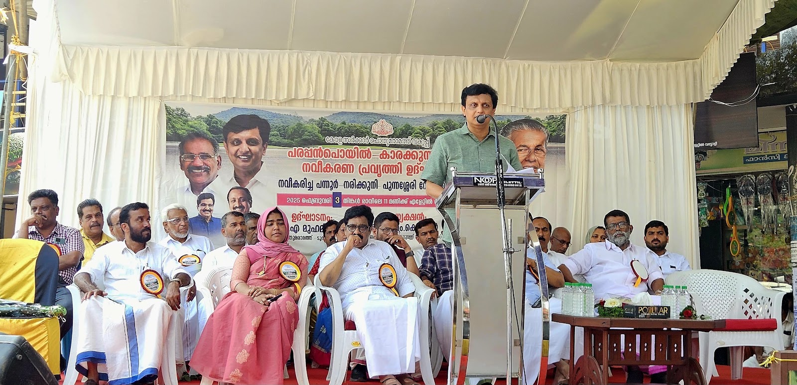 നാലു പഞ്ചായത്തുകളെയും ഒരു മുനിസിപ്പാലിറ്റിയേയും ബന്ധിപ്പിക്കുന്ന പ്രധാന പാതയായ പരപ്പൻപൊയിൽ - കാരക്കുന്നത്ത് റോഡ് പ്രവൃത്തി സമയബന്ധിതമായി പൂർത്തീകരിക്കുന്നതിന് ആവശ്യമായ നടപടികൾ സ്വീകരിക്കുമെന്ന് മന്ത്രി ഉദ്ഘാടന പ്രസംഗത്തിൽ സൂചിപ്പിച്ചു.